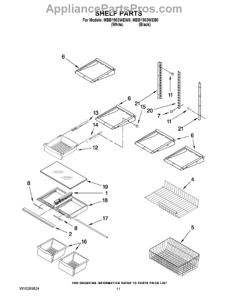 Note: For the right side drawer glide, use part number WP67001053
