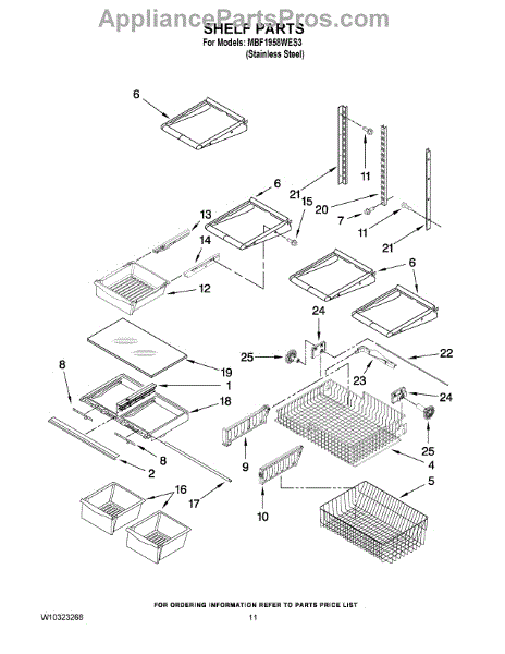 Note: For the right side drawer glide, use part number WP67001053