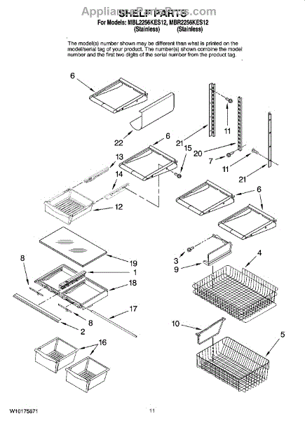 Note: For the right side drawer glide, use part number WP67001053