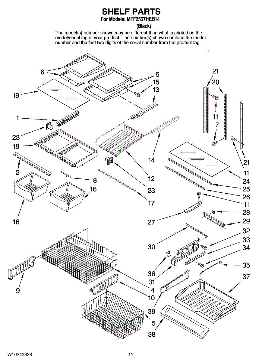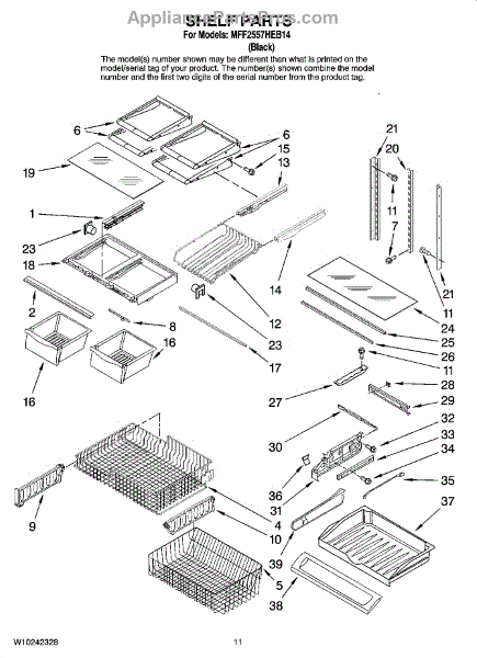 Note: For the right side drawer glide, use part number WP67001053