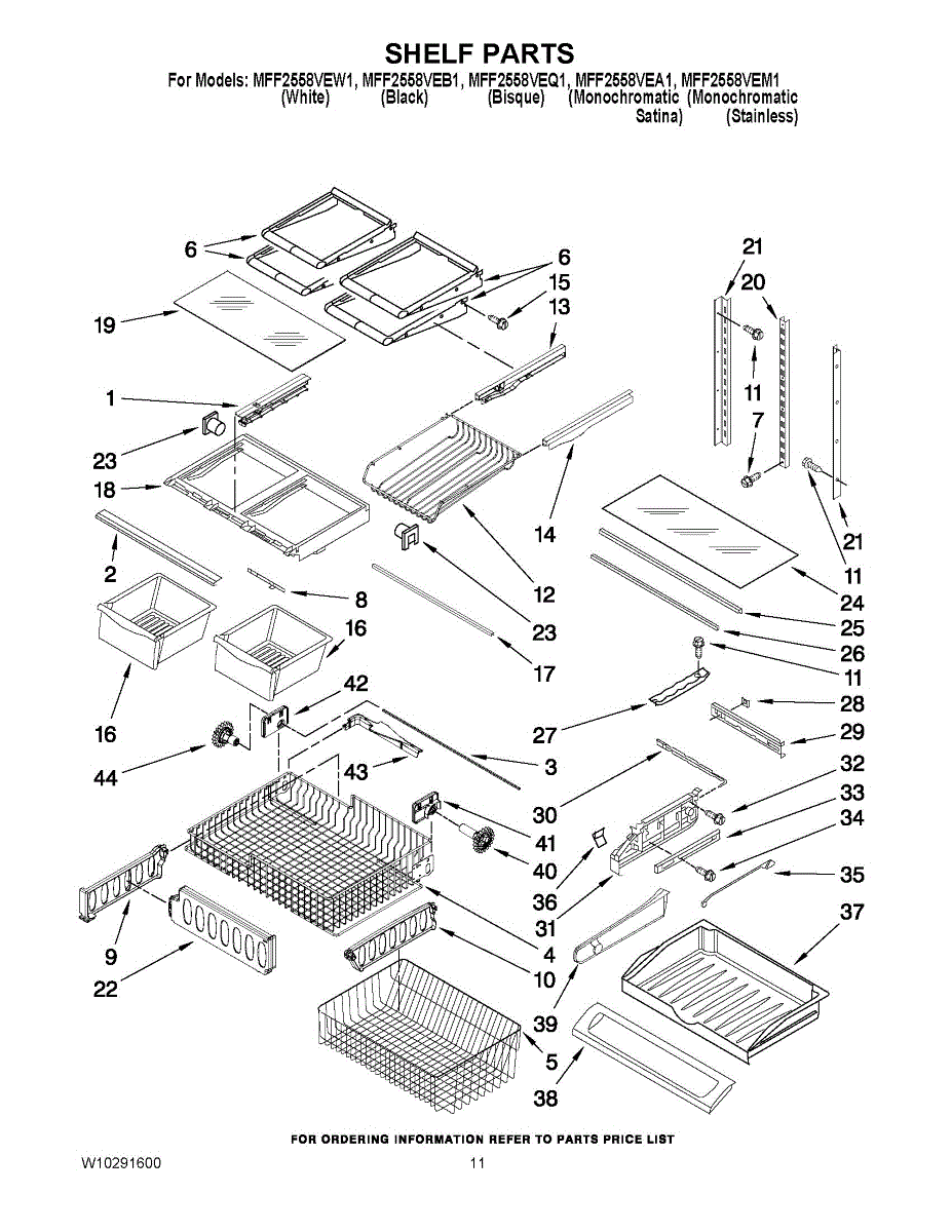 Note: For the right side drawer glide, use part number WP67001053