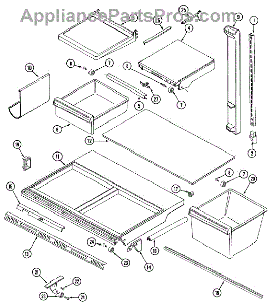 This factory screw secures appliance components to their mounting points. Replace missing, worn, or stripped hardware to restore a tight fit, proper alignment, and quieter operation across the affected assembly.