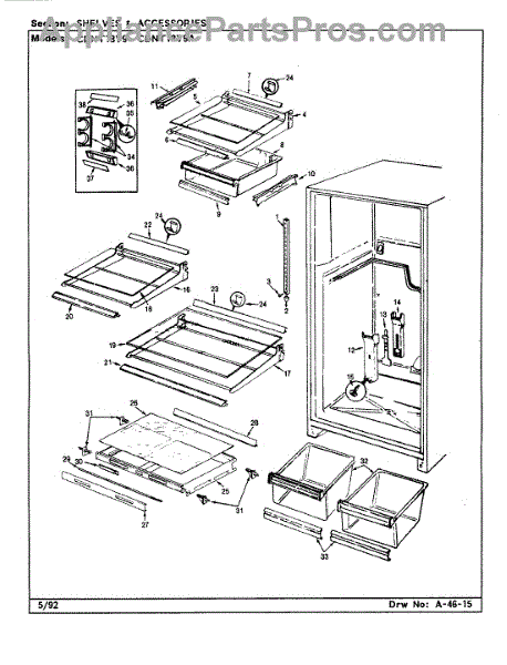 This factory screw secures appliance components to their mounting points. Replace missing, worn, or stripped hardware to restore a tight fit, proper alignment, and quieter operation across the affected assembly.
