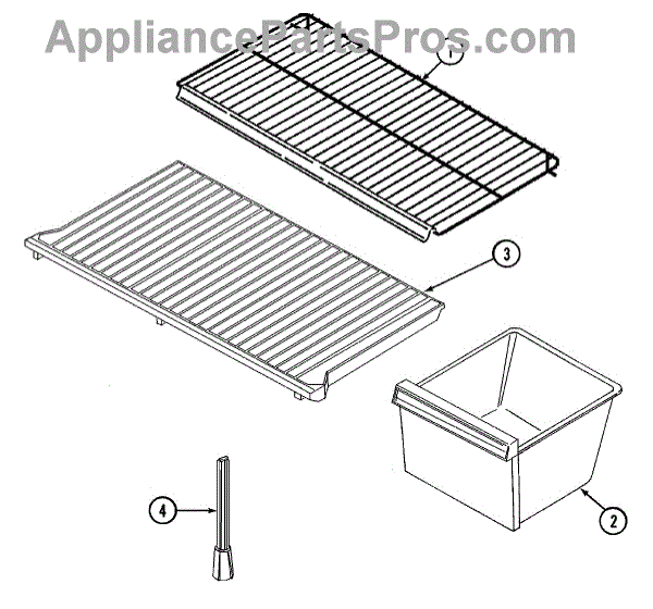 The crisper shelf center support stabilizes the pan cover above the crisper drawers to keep it level under load. Replace a cracked or missing support to restore proper shelf alignment and smooth crisper drawer operation.