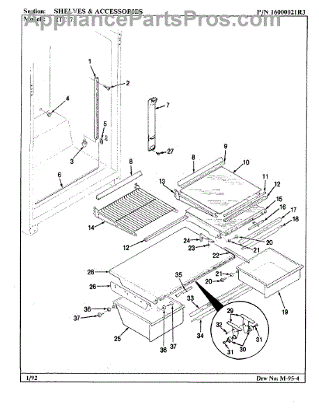 This factory screw secures appliance components to their mounting points. Replace missing, worn, or stripped hardware to restore a tight fit, proper alignment, and quieter operation across the affected assembly.