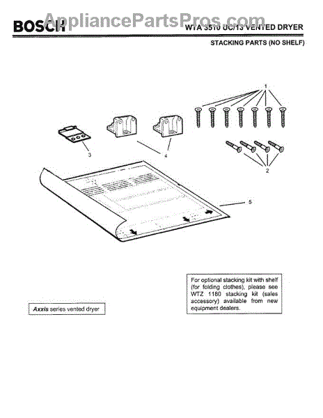 A small metal clip that secures the dryer to the top of the washer when stacking, keeping the pair stable during operation. Use this replacement clip if the original is bent, missing, or fails to hold the units together. What it does: