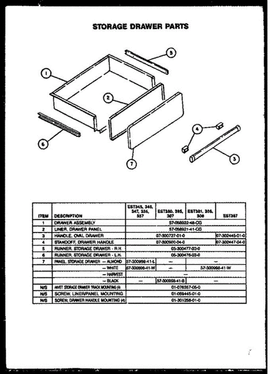 Mounting screw secures panels, brackets, and trim to the appliance frame. Replace if screw is stripped, missing, or damaged to restore secure fastening.