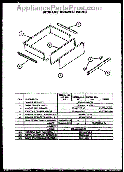 Parts for Amana EST381: 07 - Storage Drawer Parts