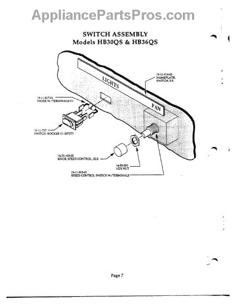 Parts for Thermador HB30QS: 07 - Switch Assembly Parts