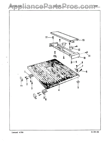 This factory screw secures appliance components to their mounting points. Replace missing, worn, or stripped hardware to restore a tight fit, proper alignment, and quieter operation across the affected assembly.