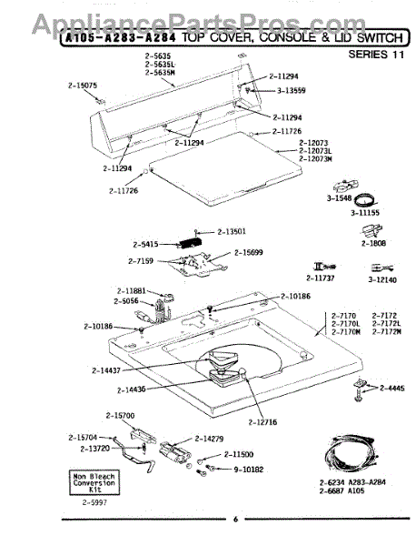 Parts for Maytag A283: 07 - Top Cover, Console & Lid Switch (Ser 11) Parts