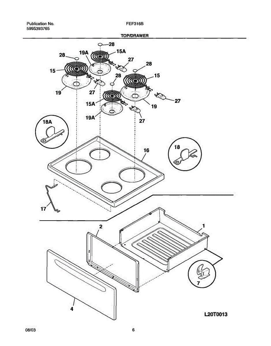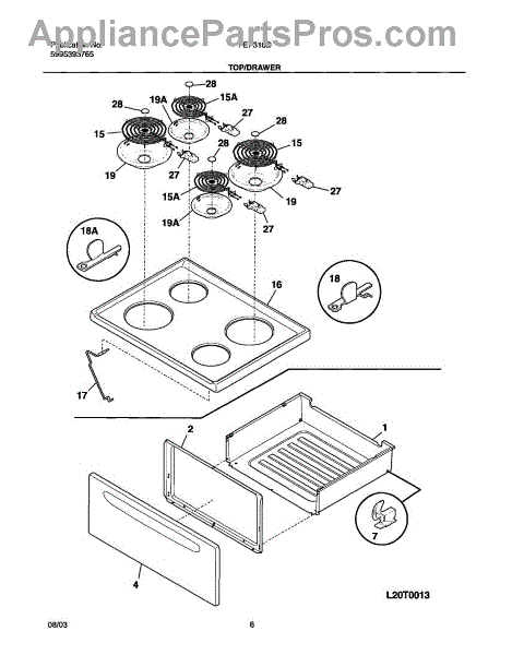 Mounting screw for range bottom drawer assembly. Replaces lost, stripped, or damaged screws. 6-20 x 0.312 inch size. Essential hardware for drawer repair.