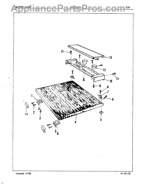 This factory screw secures appliance components to their mounting points. Replace missing, worn, or stripped hardware to restore a tight fit, proper alignment, and quieter operation across the affected assembly.