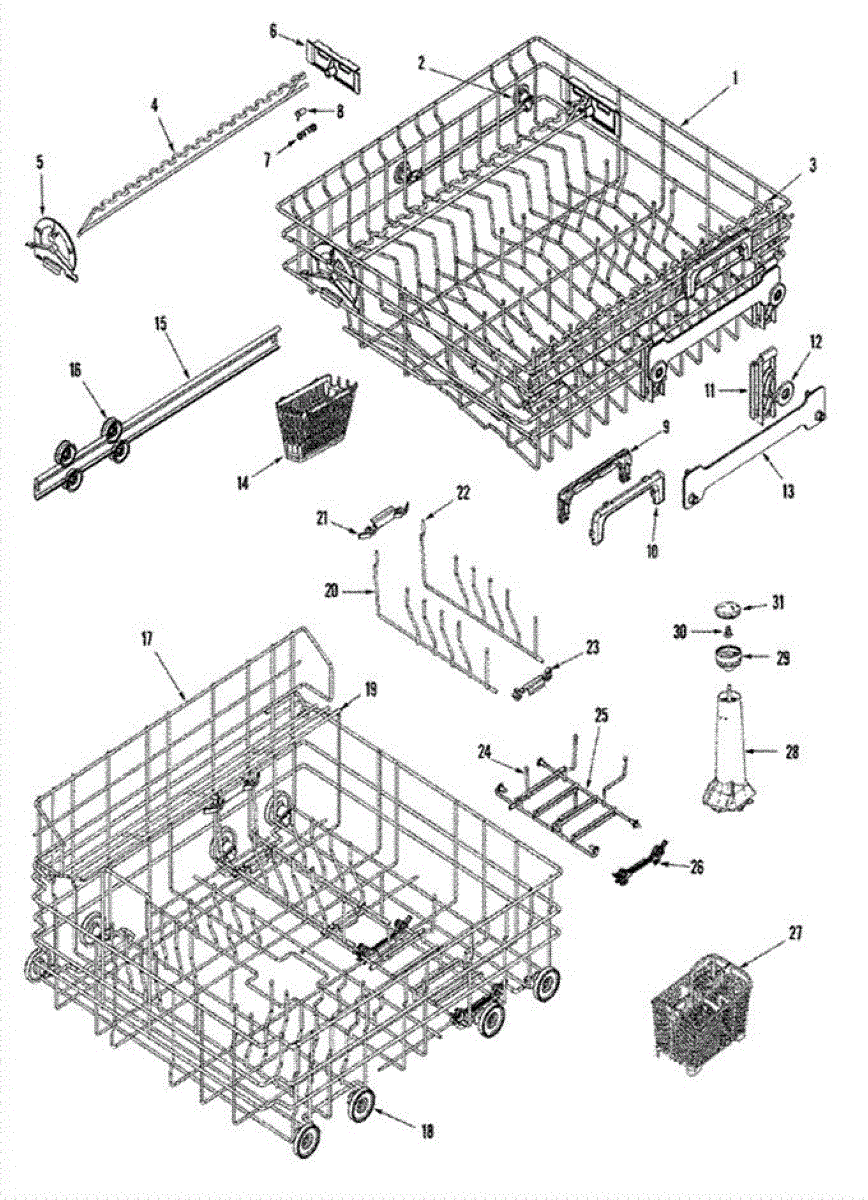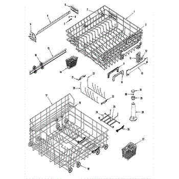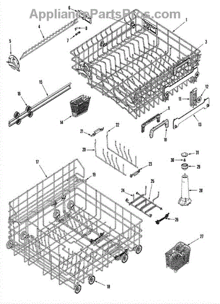 Replacement lower dishrack assembly for dishwashers. Installs as the bottom rack to hold plates, pots, and pans. Replace if rusted, cracked, or broken.