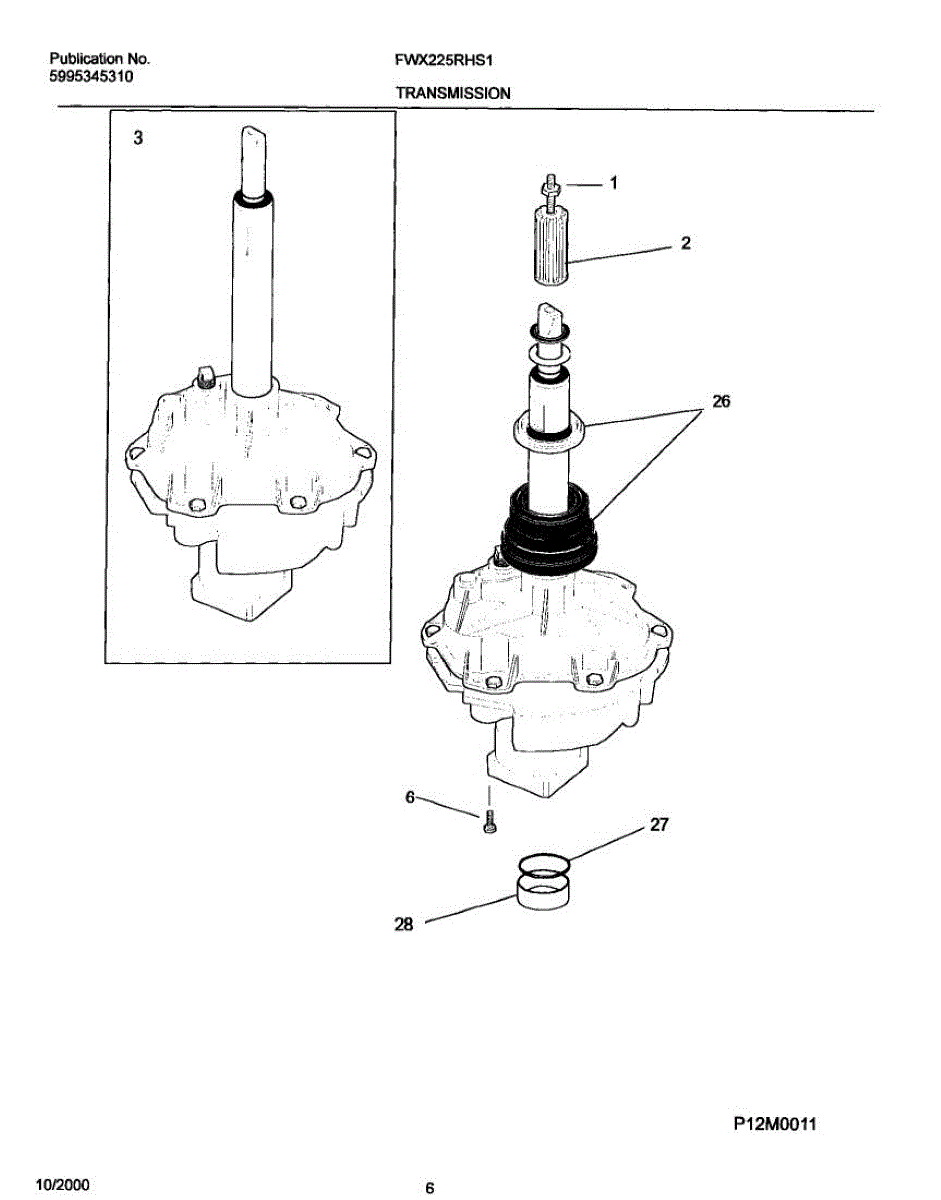This replacement spacer positions the transmission bearing block to help maintain proper alignment and drivetrain spacing for reliable washer operation. It restores correct fit where worn or damaged spacers cause misalignment. What it does