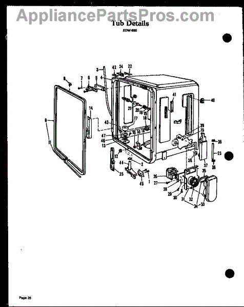 Replacement washer for dishwashers. Used to secure components and create proper seals. Replace if worn, cracked, or missing to restore fit.