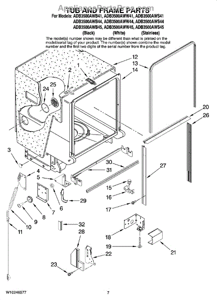 Parts for Maytag ADB3500AWB41: 07 - Tub And Frame Parts