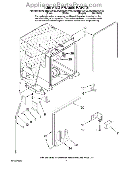 Parts for Maytag MDB5601AWQ0: 07 - Tub And Frame Parts