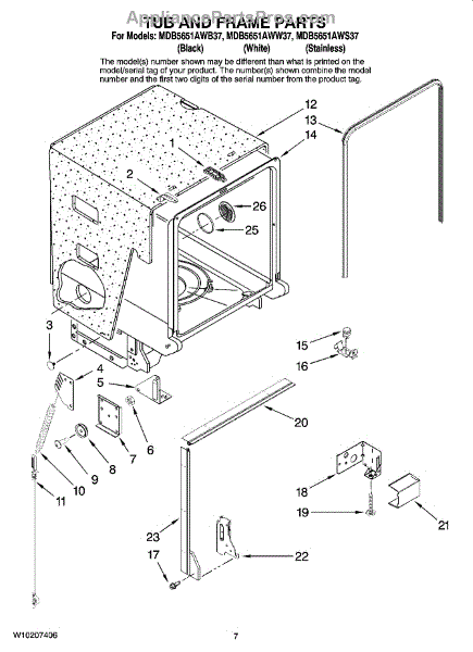 Parts for Maytag MDB5651AWS37: 07 - Tub And Frame Parts