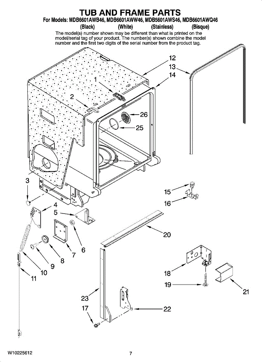 Parts for Maytag MDB6601AWW46: 07 - Tub And Frame Parts