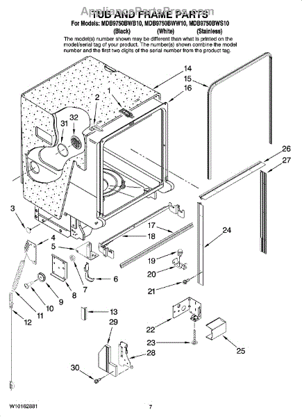 Parts for Maytag MDB9750BWB10: 07 - Tub And Frame Parts