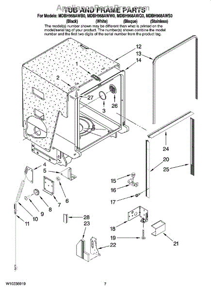Parts for Maytag MDBH968AWW0: 07 - Tub And Frame Parts