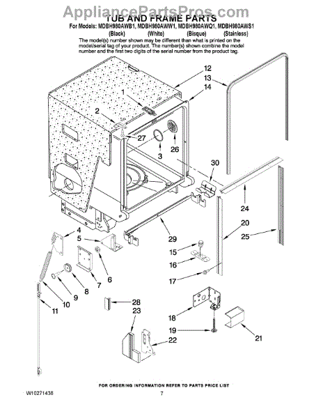 Parts for Maytag MDBH980AWS1: 07 - Tub And Frame Parts