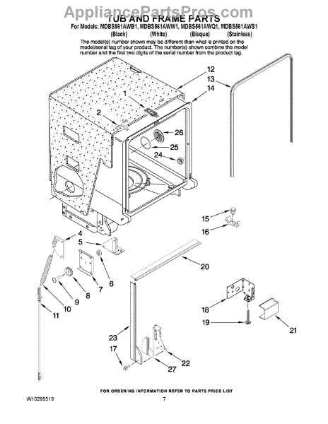 Parts for Maytag MDBS561AWQ1: 07 - Tub And Frame Parts
