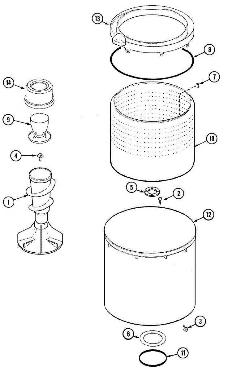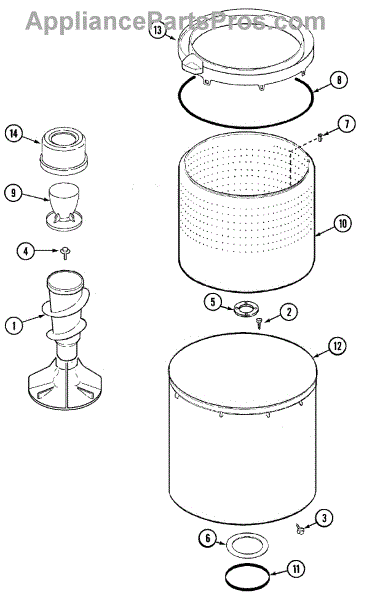 • Seals the gap between the basket/tub and the center drive shaft to help prevent water from leaking into the motor/tub area