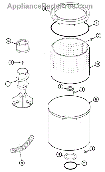 • Seals the gap between the basket/tub and the center drive shaft to help prevent water from leaking into the motor/tub area