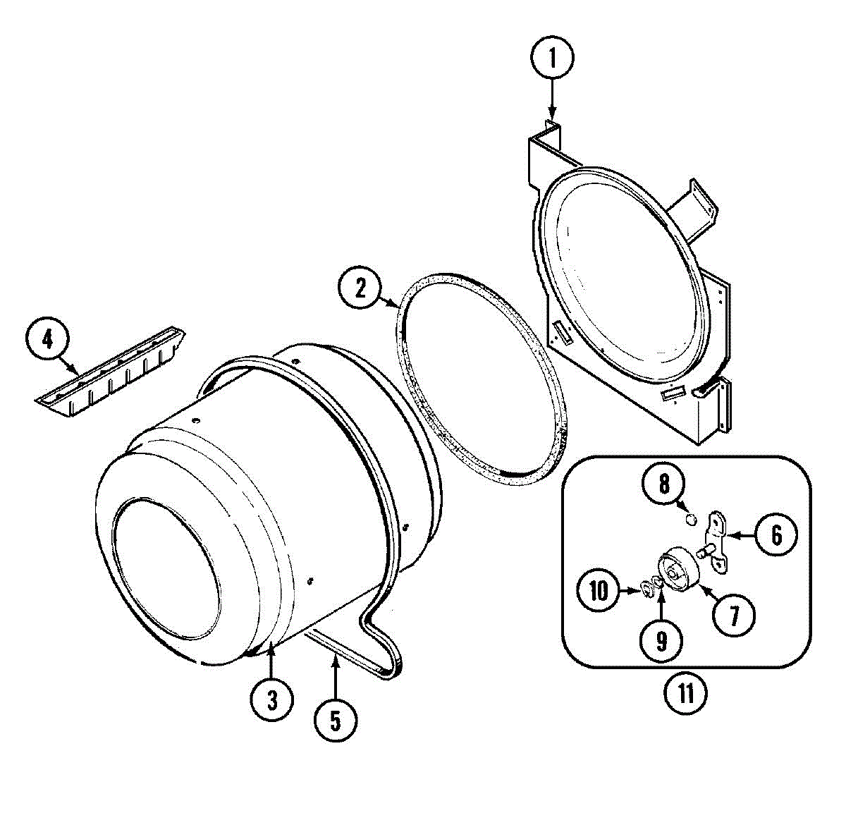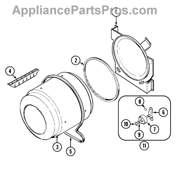 Felt seal creates an airtight barrier between drum and bulkhead for efficient drying. Replace if worn, torn, or causing longer dry times and lint buildup.