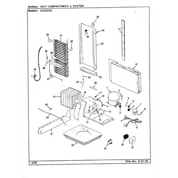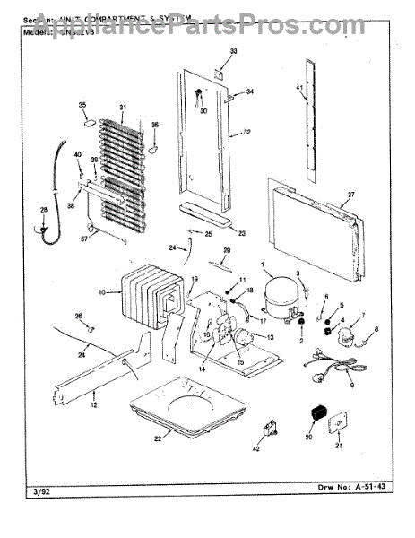Plastic defrost pan. Evaporator pan hangs from side rails and rests on compressor.