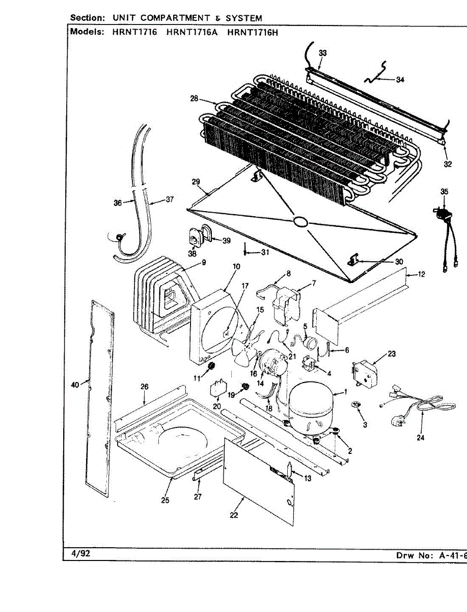 Plastic defrost pan. Evaporator pan hangs from side rails and rests on compressor.