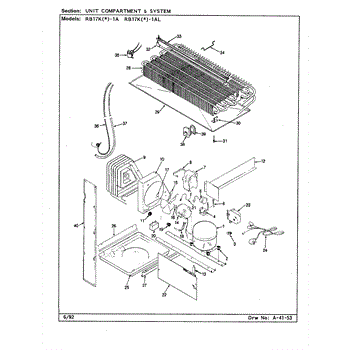 Plastic defrost pan. Evaporator pan hangs from side rails and rests on compressor.