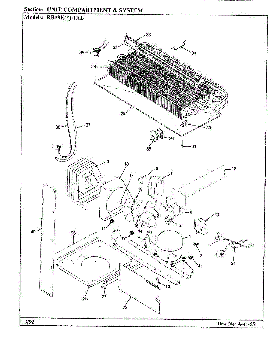Plastic defrost pan. Evaporator pan hangs from side rails and rests on compressor.
