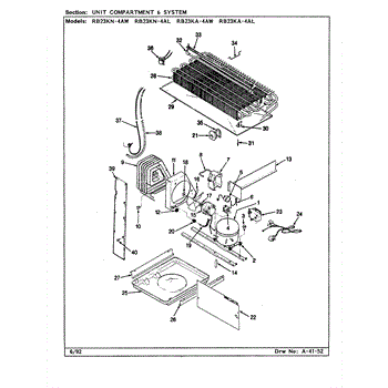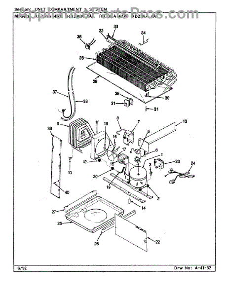Plastic defrost pan. Evaporator pan hangs from side rails and rests on compressor.