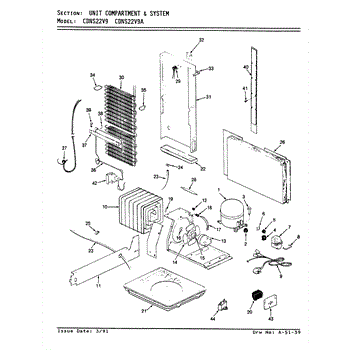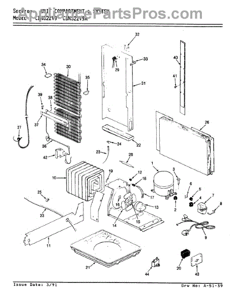 Plastic defrost pan. Evaporator pan hangs from side rails and rests on compressor.