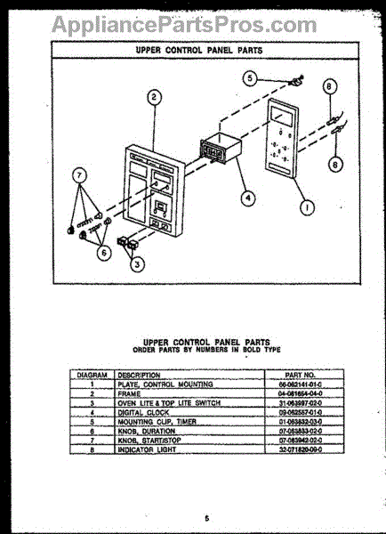 Parts for Amana RKD395: 07 - Upper Control Panel Parts