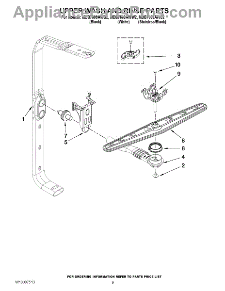 The Feed Tube is an OEM replacment part for Whirlpool built-in dishwashers. Extending from the bottom of the lower spray arm manifold to the upper spray arm, this tube routes rinse water during cycles. Causes relate to mineral accumulation stiffening the interior over time, punctures from sharp utensil edges, or cracks allowing leaks Symptoms of a defective feed tube involve: