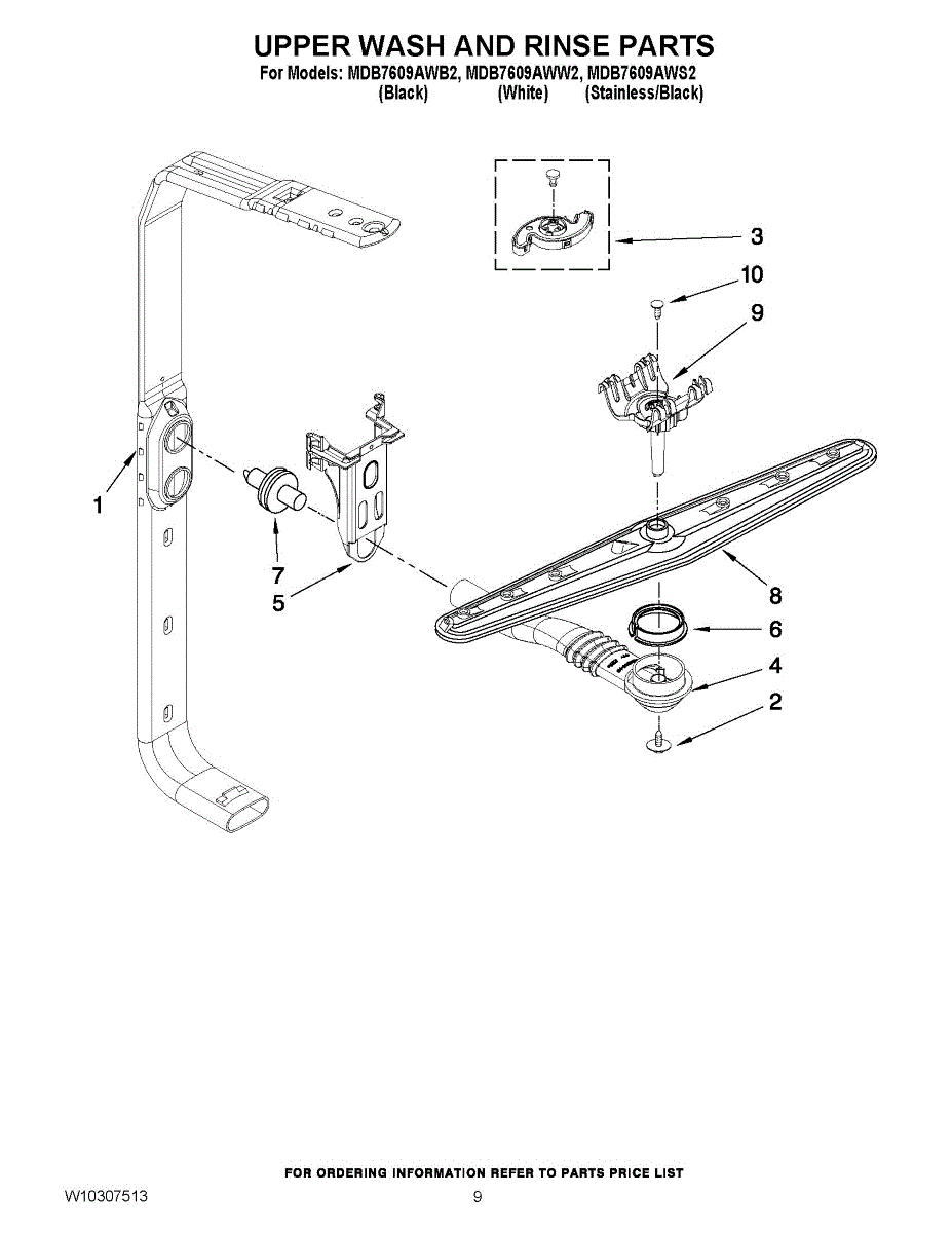 Replaces cracked, mineral-clogged, or punctured feed tube that routes water from lower manifold to upper spray arm. Includes rubber grommets and fittings.