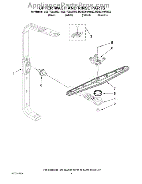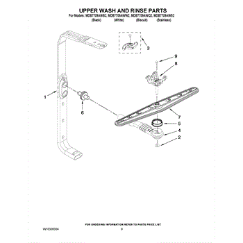 The Feed Tube is an OEM replacment part for Whirlpool built-in dishwashers. Extending from the bottom of the lower spray arm manifold to the upper spray arm, this tube routes rinse water during cycles. Causes relate to mineral accumulation stiffening the interior over time, punctures from sharp utensil edges, or cracks allowing leaks Symptoms of a defective feed tube involve: