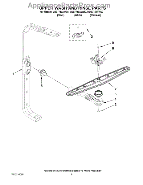 The Feed Tube is an OEM replacment part for Whirlpool built-in dishwashers. Extending from the bottom of the lower spray arm manifold to the upper spray arm, this tube routes rinse water during cycles. Causes relate to mineral accumulation stiffening the interior over time, punctures from sharp utensil edges, or cracks allowing leaks Symptoms of a defective feed tube involve:
