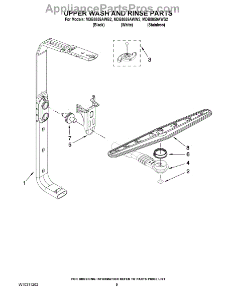 The Feed Tube is an OEM replacment part for Whirlpool built-in dishwashers. Extending from the bottom of the lower spray arm manifold to the upper spray arm, this tube routes rinse water during cycles. Causes relate to mineral accumulation stiffening the interior over time, punctures from sharp utensil edges, or cracks allowing leaks Symptoms of a defective feed tube involve: