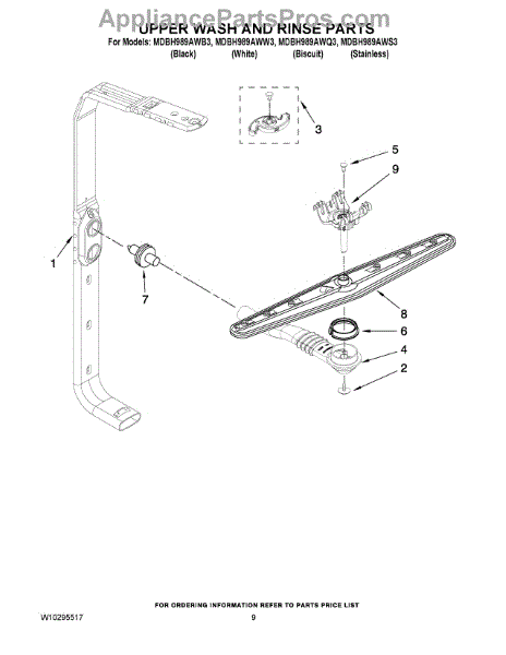 The Feed Tube is an OEM replacment part for Whirlpool built-in dishwashers. Extending from the bottom of the lower spray arm manifold to the upper spray arm, this tube routes rinse water during cycles. Causes relate to mineral accumulation stiffening the interior over time, punctures from sharp utensil edges, or cracks allowing leaks Symptoms of a defective feed tube involve: