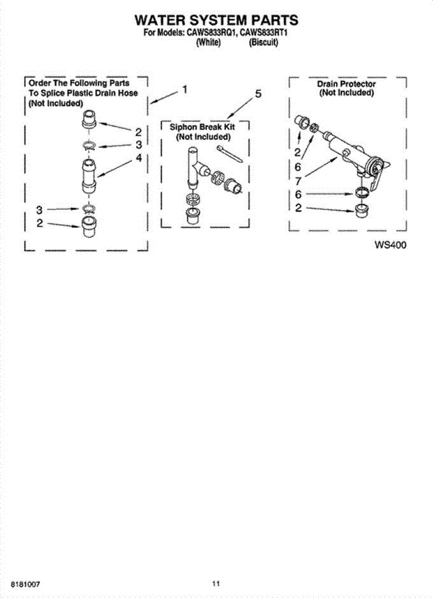 Parts for Whirlpool CAWS833RT1: 07 - Water System Parts