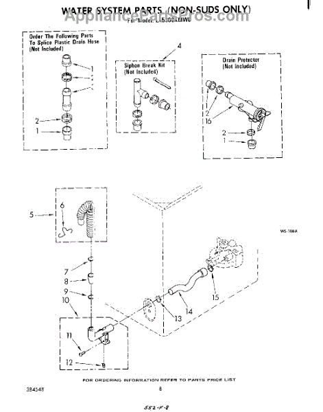 Parts for Whirlpool LA5300XMW0: 07 - Water System (Non-Suds Only) Parts