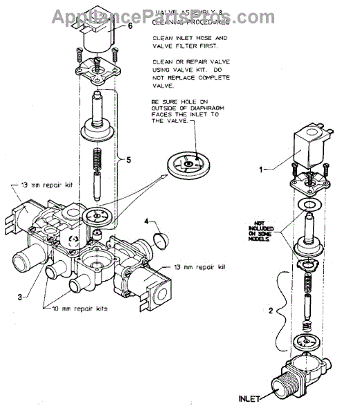 This 2-way water valve controls water flow into the appliance, restoring proper fill and cycle operation. Replacement helps stop slow fills, no-fill conditions, or continuous filling caused by a faulty inlet valve. What it does: