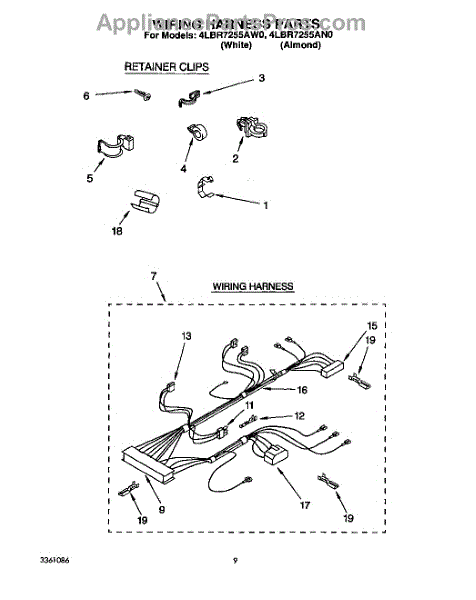 Parts for Whirlpool 4LBR7255AW0: 07 - Wiring Harness Parts