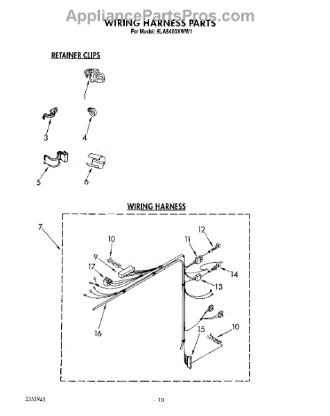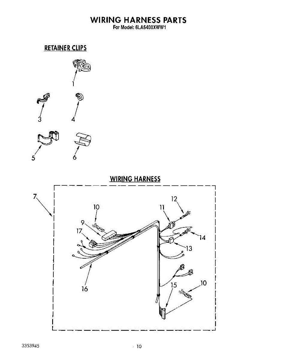 Parts for Whirlpool 6LA5400XWW1: 07 - Wiring Harness Parts