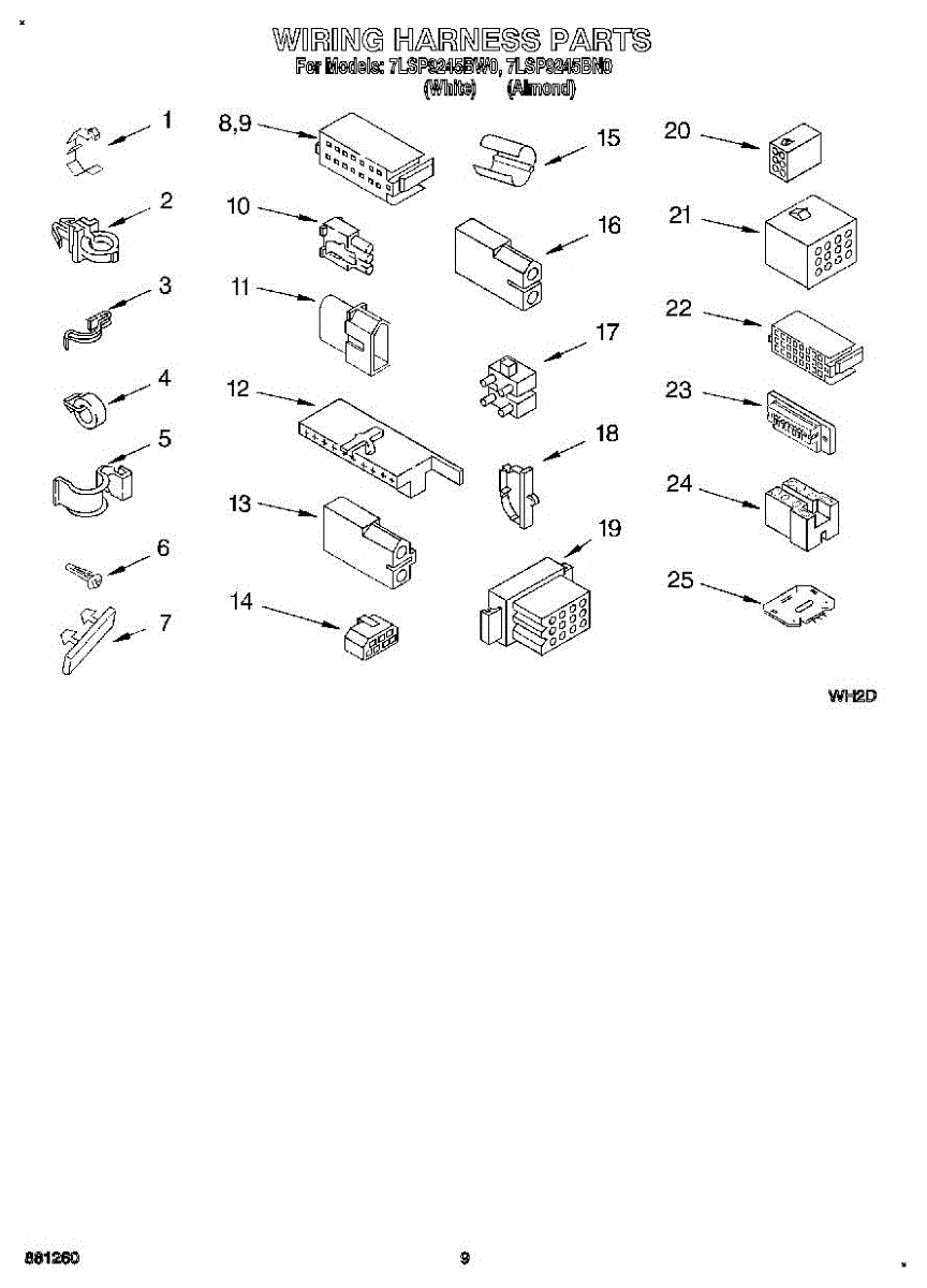 Parts for Whirlpool 7LSP9245BW0: 07 - Wiring Harness Parts